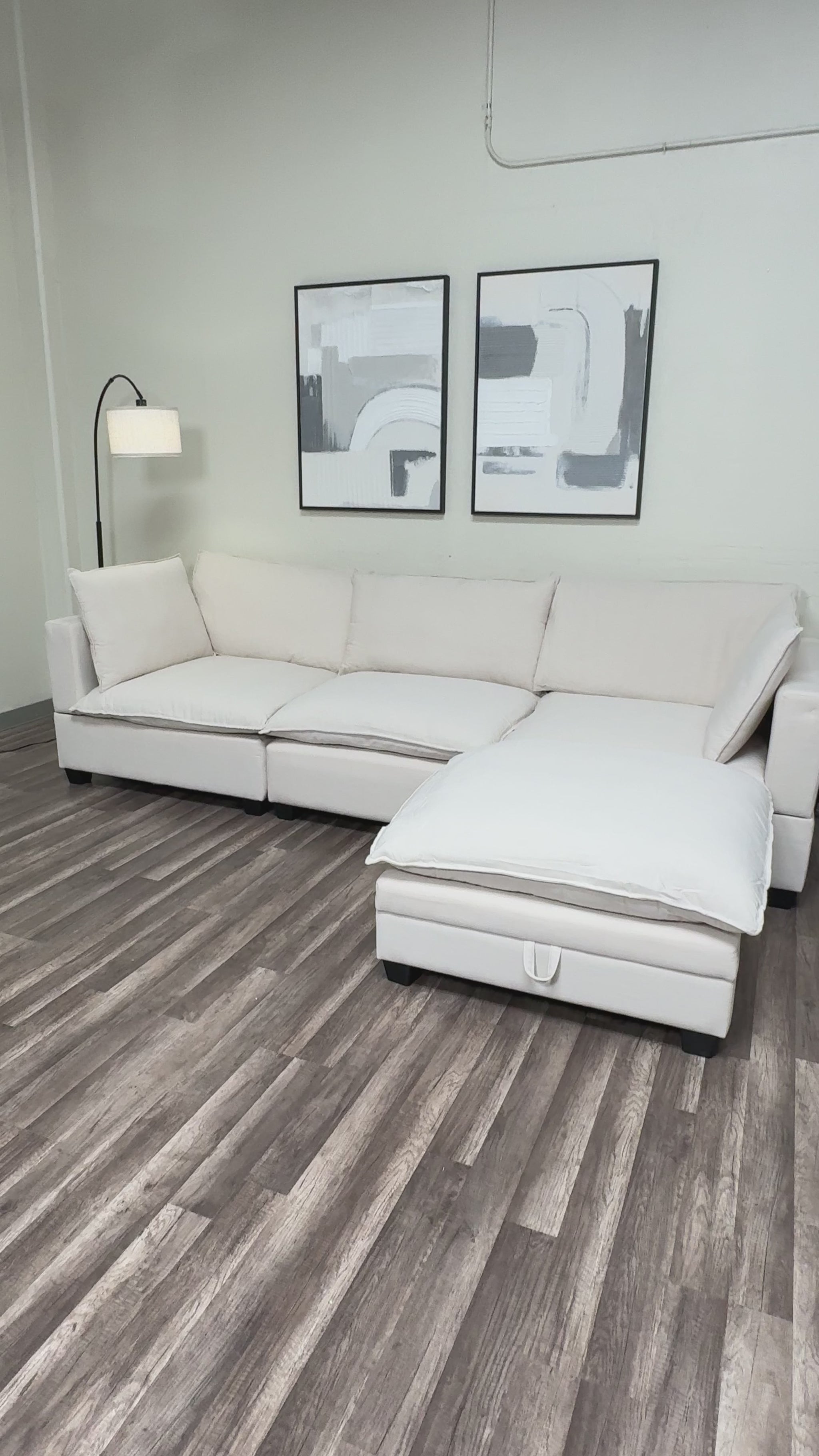This ultra-comfy cloud-style couch is modular and customizable to fit your space perfectly. The couch color is sleek and modern.